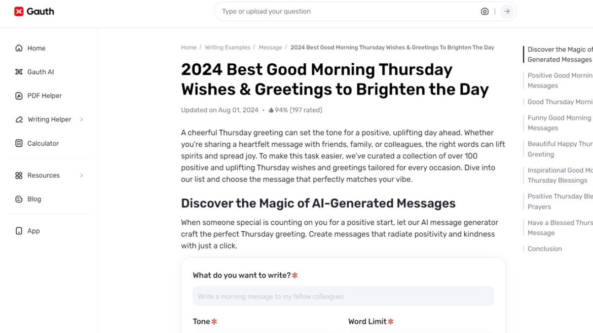 Creativity is at the heart of any great greeting, and Gauth is designed to generate creative content that stands out. The AI’s ability to mix different tones—such as combining motivation with a touch of humor—results in greetings that are both engaging and memorable. For instance, a Gauth-generated Thursday greeting might say, “Thursday is just Friday’s cool cousin—stay motivated; the weekend is almost here!”